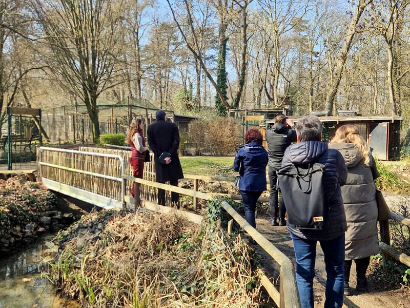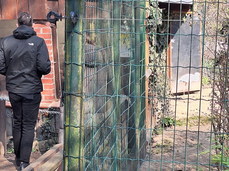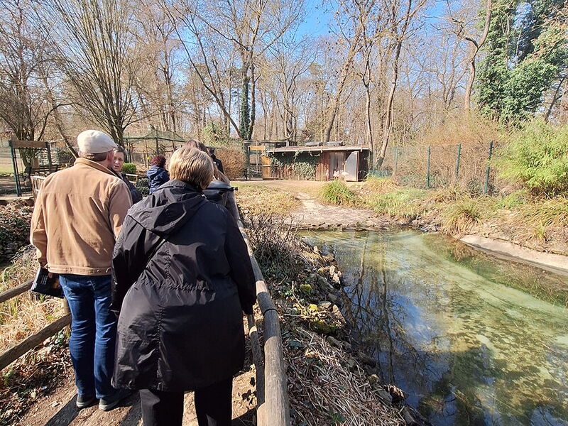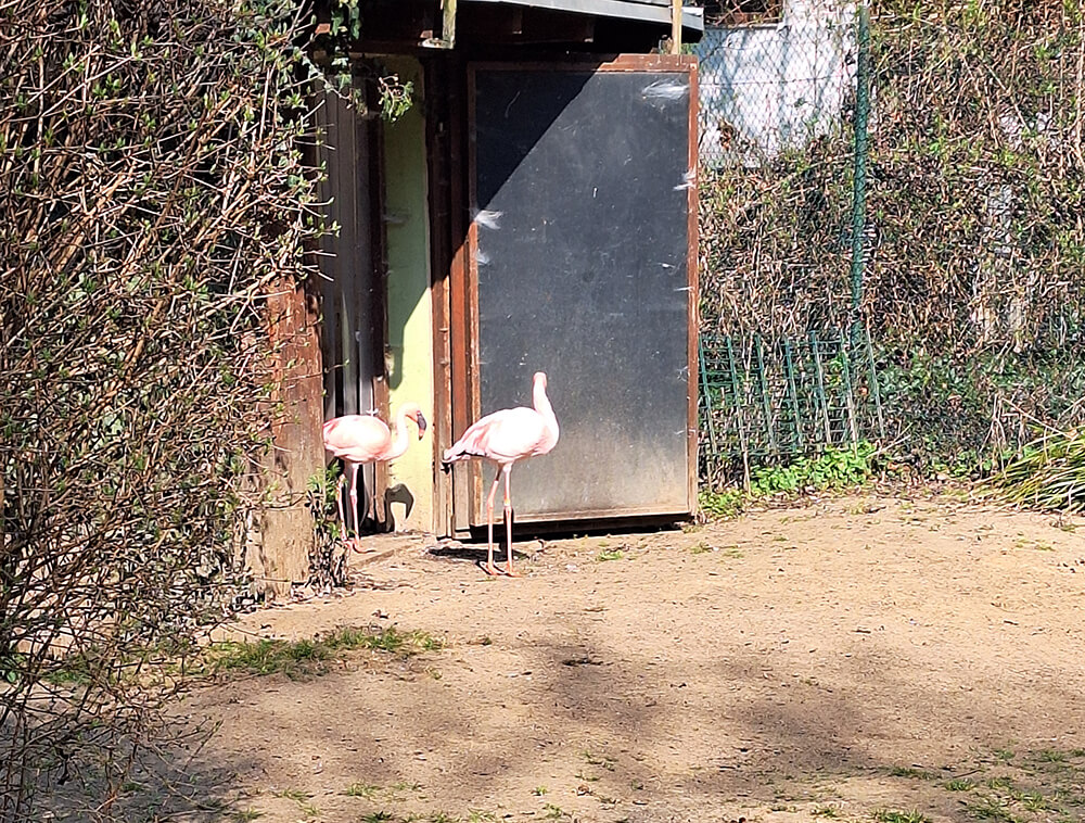 Im Anschluss erläuterte Frau Röhner – die neue Leiterin des Zoos – das Vorhaben direkt bei den Flamingos, die sich in der Frühjahrssonne wärmten und die Gäste am Zaun neugierig beobachteten.