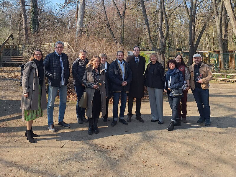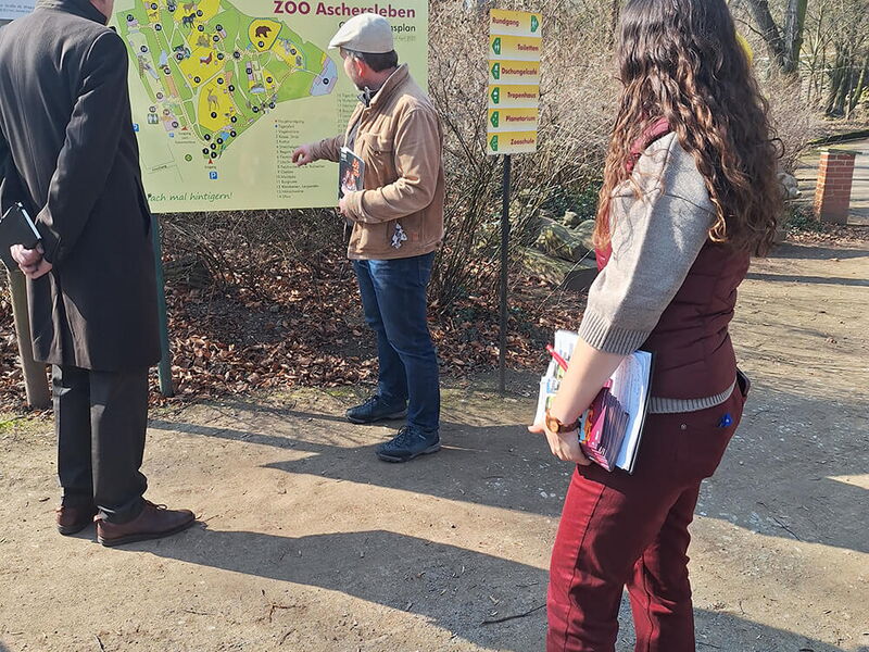 Der Zoo in Aschersleben hat kürzlich einen Bewilligungsbescheid für EFRE-Mittel zum Neubau eines Warmhauses für die Flamingos erhalten. Was liegt also näher, als sich im Zoo zu treffen.